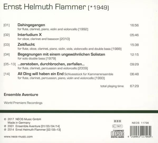 Ernst Helmuth Flammer: Works For Ensemble I versie op CD in standaard editie. Deze specifieke uitgave werd uitgebracht in Duitsland bij uitgeverij NEOS op 18. mei 2018. Album valt binnen het genre Klassieke muziek en Contemporary classical.