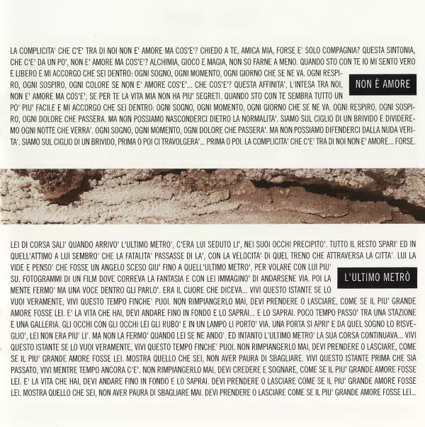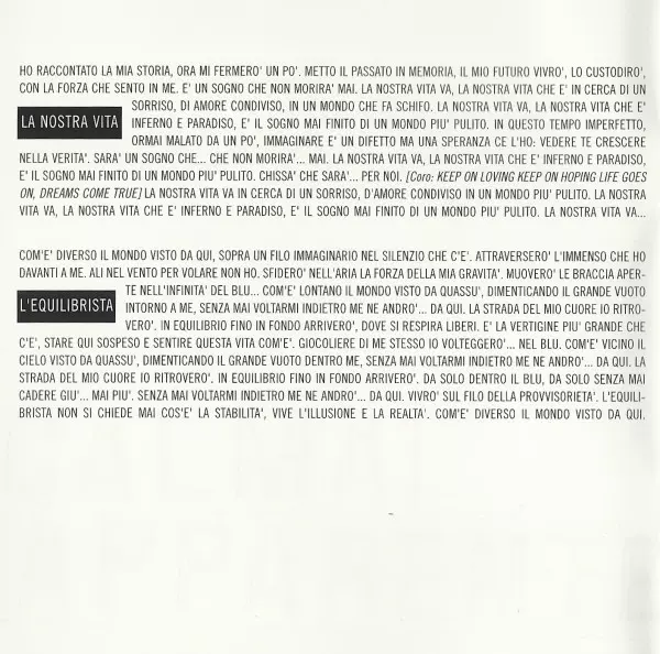 Acoustic Guitar, Piano Claudio Guidetti | Bass Tony Franklin | Drums Vinnie Colaiuta | Electric Guitar Claudio Guidetti, Michael Landau | Harmonica Jimmy Z | Keyboards Celso Valli, Claudio Guidetti | Lyrics By Eros Ramazzotti, Kaballà | Music By Claudio Guidetti, Eros Ramazzotti