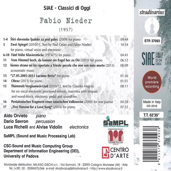 | Artiest | Aldo Orvieto | Alvise Vidolin | Fabio Nieder | Sound And Music Processing Lab (SaMPL) | Luca Richelli |