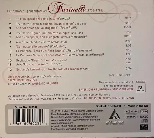 | Artiest | Jörg Waschinski | Wolfgang Brunner | Salzburger Hofmusik | Carlo Broschi Farinelli |