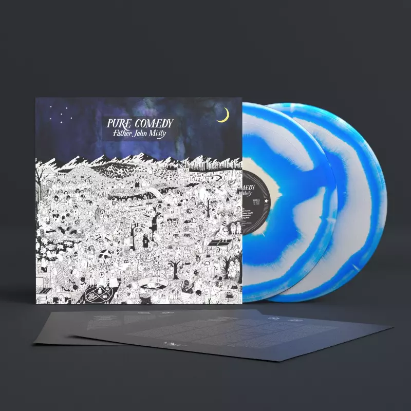 Father John Misty: Pure Comedy versie op vinyl 2LP in standaard editie. Deze specifieke uitgave werd uitgebracht in Europa bij uitgeverij Bella Union op 7. april 2017. Album valt binnen het genre Rock, Pop, Folk, World, & Country, Ballade, Indie Rock, Folk en Country-Rock. Rainbow Cover Vinyl.