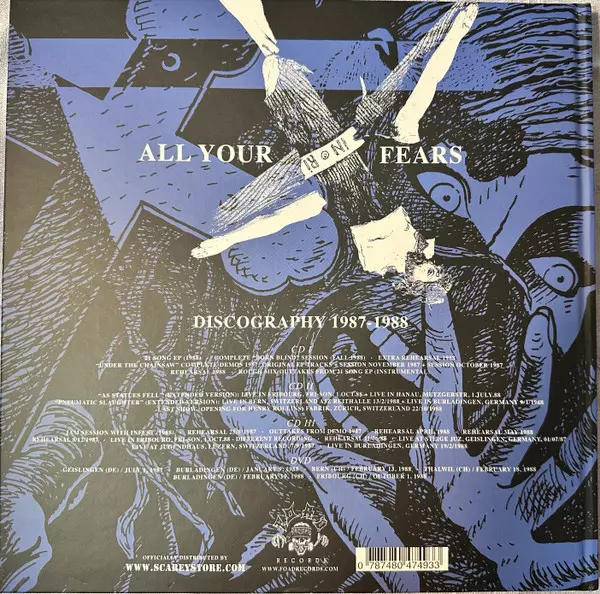 Fear Of God: All Your Fears - Discography 1987-1988 versie op 3CD/DVD/Doos in standaard editie. Deze specifieke uitgave werd uitgebracht in Italië bij uitgeverij F.O.A.D. Records op 25. juli 2025. Album valt binnen het genre Rock, Grindcore en Noisecore.