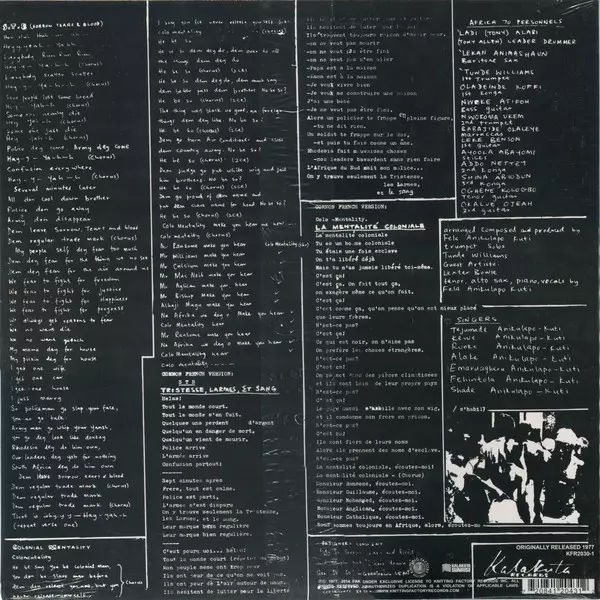| Meer informatie | US Import Kalakuta/Knitting Factory |