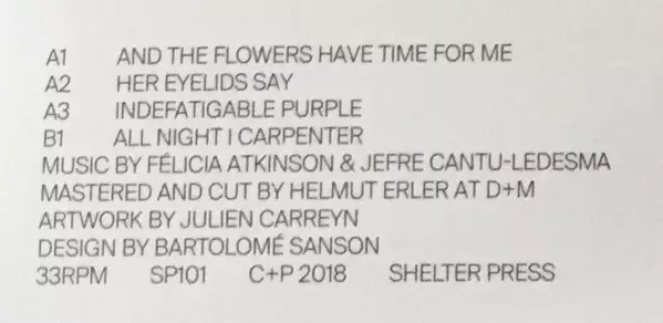 | Artiest | Jefre Cantu-Ledesma | Félicia Atkinson |