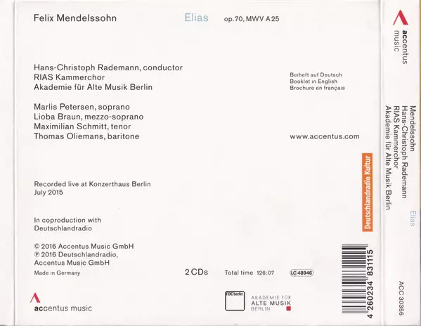 | Artiest | Felix Mendelssohn-Bartholdy | Akademie Für Alte Musik Berlin | RIAS-Kammerchor | Hans-Christoph Rademann |