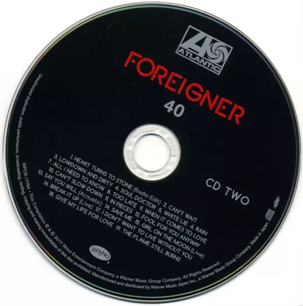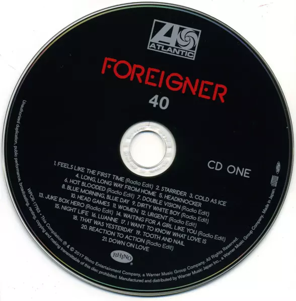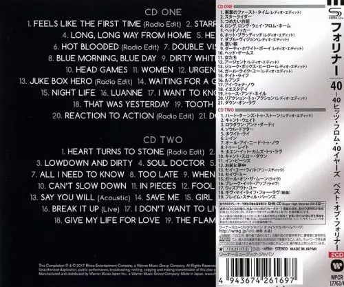 Foreigner: 40 versie op 2CD in remastered editie. Deze specifieke uitgave werd uitgebracht in Japan bij uitgeverij Rhino Records (2) in samenwerking met Atlantic op 30. juni 2017.