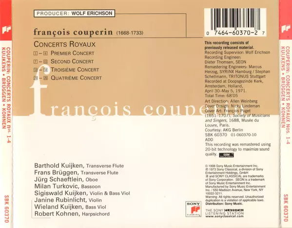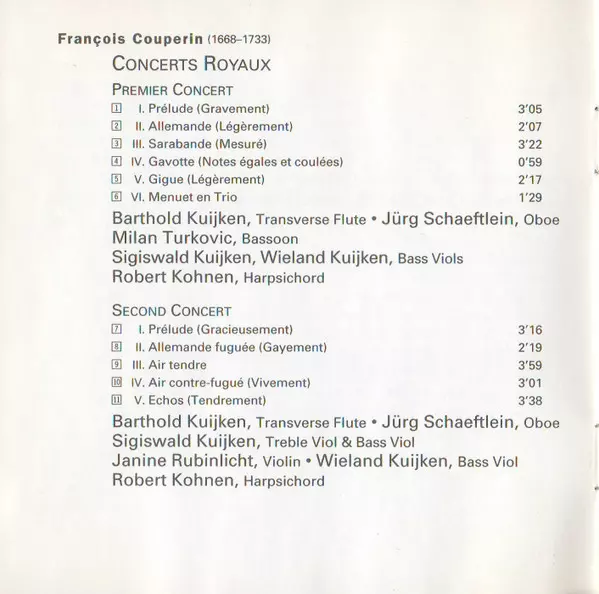 | Artiest | François Couperin | Frans Brüggen | Barthold Kuijken | Robert Kohnen |