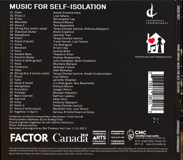 | 33 | Frank Horvat, Jeanne Côté: Music For Self-Isolation: Pandemic Stories - Jeanne Côté | 4:46 min | |