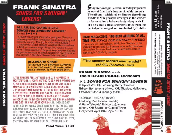"Songs For Swingin' Lovers" bylo Sinatrovo desáté studiové album, které aranžoval Nelson Riddle: popové standardy nahrané v jazzovém stylu. V roce 2000 se dostalo na 100. místo v žebříčku All Time Top 1000 Albums Colina Larkina. LP se stalo Sinatrdovým prvním albem, které se ve Velké Británii umístilo na prvním místě.