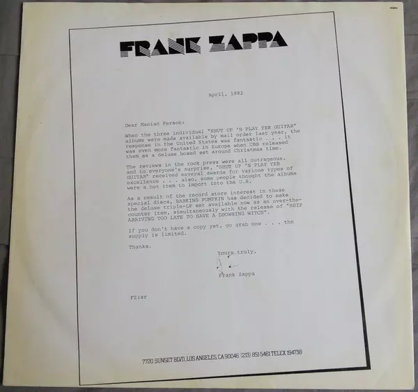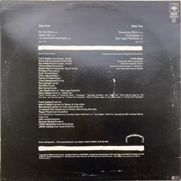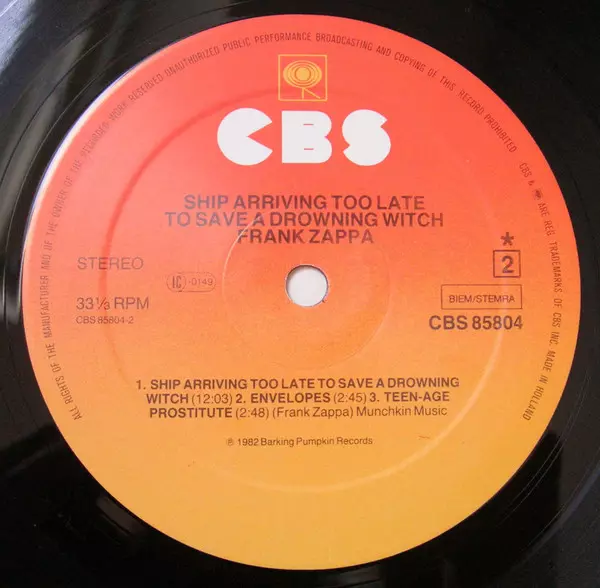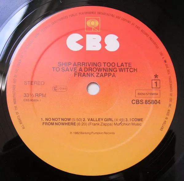 CBS | Barking Pumpkin Records 3. mei 1982 Europa