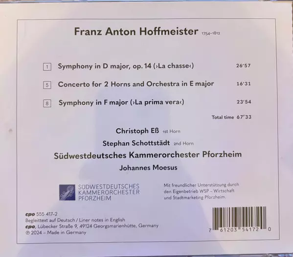 | Artiest | Franz Anton Hoffmeister | Südwestdeutsches Kammerorchester | Johannes Moesus | Christoph Eß | Stephan Schottstädt |