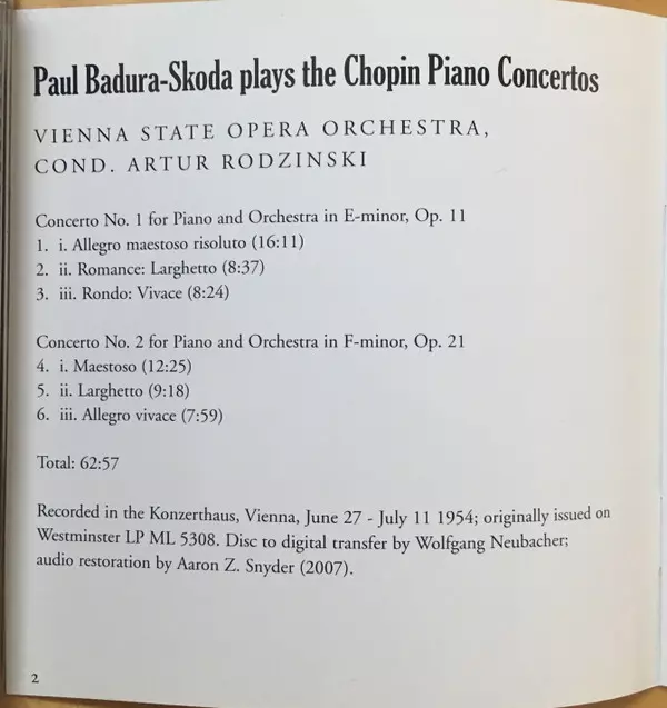 | Artiest | Frédéric Chopin | Paul Badura-Skoda | Orchester Der Wiener Staatsoper | Artur Rodzinski |