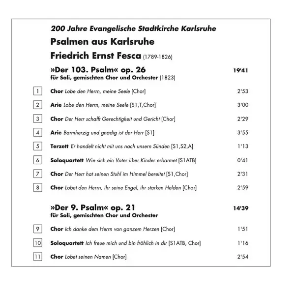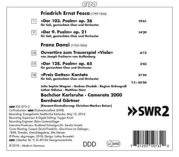 | Artiest | Franz Danzi | Julia Sophie Wagner | Friedrich Ernst Fesca | Lothar Odinius | Andrea Chudak | Regina Grönegreß | Matthias Horn | Bachchor Karlsruhe | Camerata 2000 | Bernhard Gärtner |