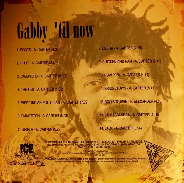 Anthony "Gabby" Carter: 'Til Now versie op CD in standaard editie. Deze specifieke uitgave werd uitgebracht in Barbados bij uitgeverij ICE op 14. juli 2017. Album valt binnen het genre Folk, World, & Country, Reggae, Calypso en Soca.
