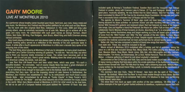 After a long period of mostly blues songs, Gary Moore returned to pure rock music in 2010. When he died suddenly on February 6, 2011, he was writing and working on a new rock album. This July 2010 Montreux concert was his last recorded performance. The setlist was based mainly on his highly successful rock albums from the 1980s with songs like "...