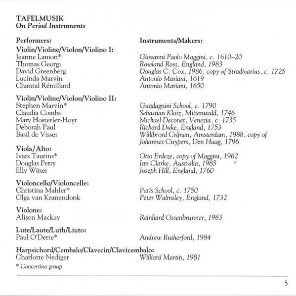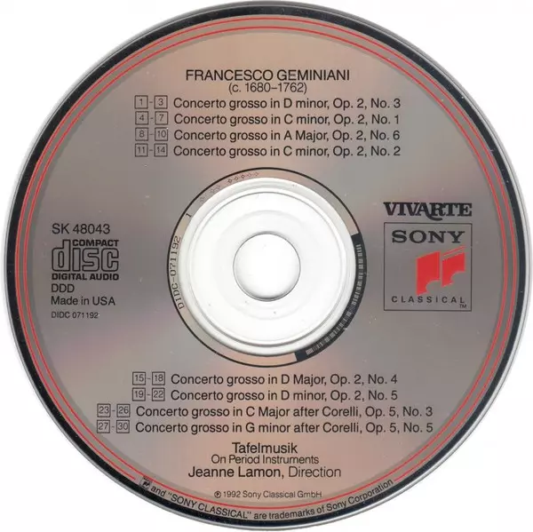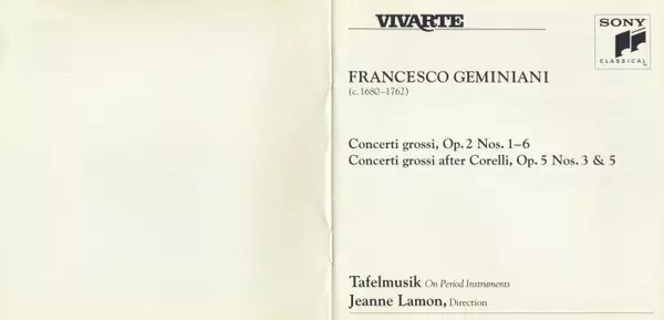 | Artiest | Tafelmusik Baroque Orchestra | Jeanne Lamon | Francesco Geminiani |