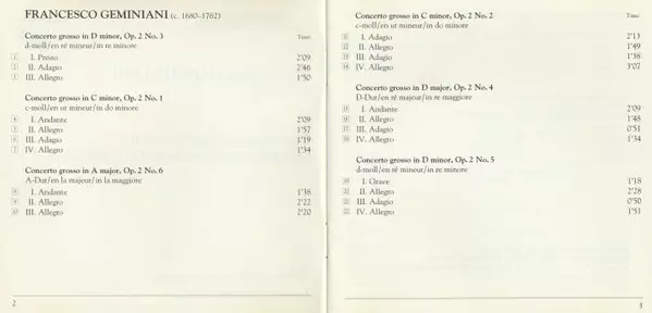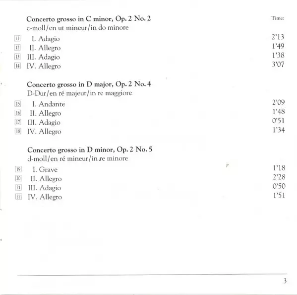 | Concerto Grosso In D Minor, Op. 2 No. 3 | ||