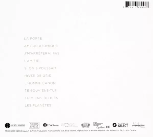 | Meer informatie | Digipack — Canadian release (Disques 4 De Trèfle / Productions Efégé) |