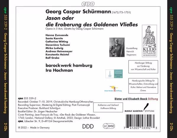 Barockwerk Hamburg: Jason versie op 2CD in standaard editie. Deze specifieke uitgave werd uitgebracht in Europa bij uitgeverij cpo op 6. mei 2022. Album valt binnen het genre Klassieke muziek, Barokmuziek en Opera.