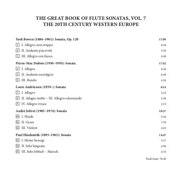 | Titel | The Great Book Of Flute Sonatas: Volume 7 - The 20th Century Western Europe |