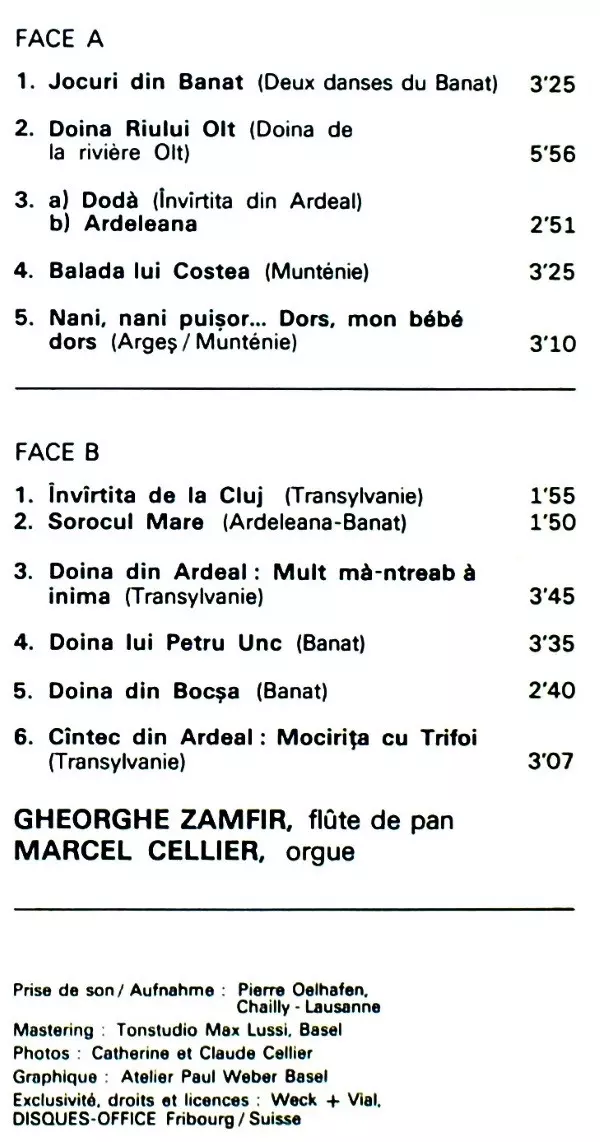 | Artiest | Gheorghe Zamfir | Marcel Cellier |