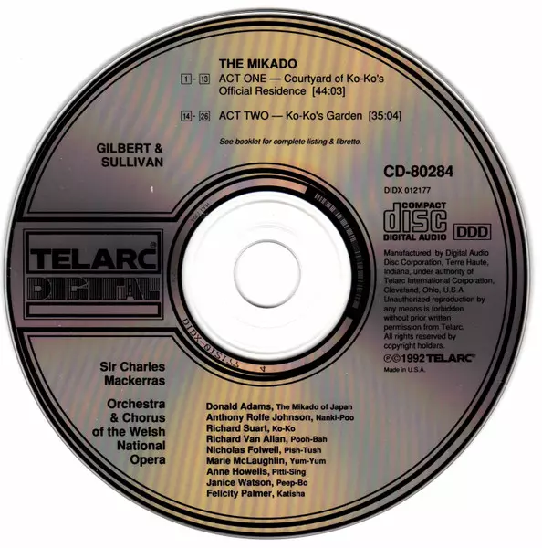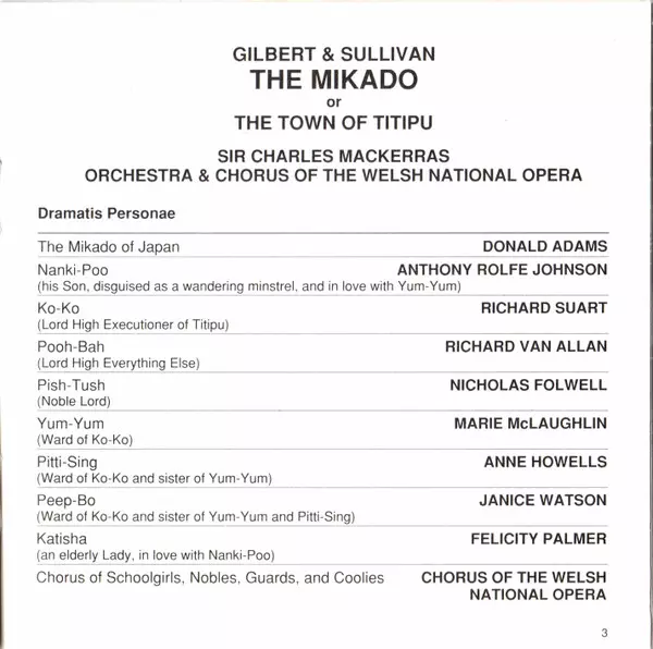 | Artiest | Sir Charles Mackerras | Welsh National Opera Chorus | The Welsh National Opera Orchestra | Sir Arthur Sullivan | William Gilbert |