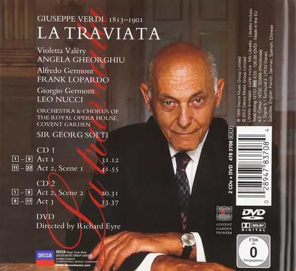 Georg Solti: La Traviata LTD versie op 2CD/DVD in limited editie. Deze specifieke uitgave werd uitgebracht in Duitsland bij uitgeverij DECCA CLASSIQUES op 11. oktober 2012. Album valt binnen het genre Klassieke muziek, Romance en Opera.