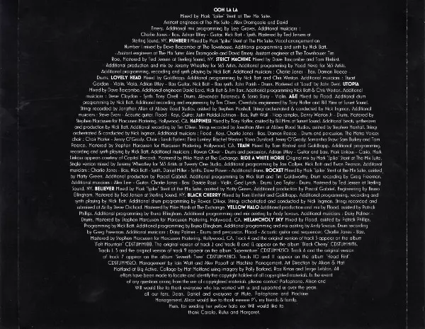 Acoustic Guitar Steve Evans | Bass Justin Meldal-Johnsen | Drums Denny Weston, Jr. | Engineer [Additional Recording And Engineering] Tim Oliver | Engineer [Overdubs Engineered By] Bill Mims, Tony Hoffer | Harp Ruth Wall | Keyboards [Keys], Guitar Flood | Mastered By Stephen Marcussen | Mixed By Flood | Programmed By [Additional Drum Programming] Nick Batt | Recorded By [Strings Recorded By] Jonathan Allen | Recorded By [Strings Recording Assistant] Stephen Marshall | Strings [Orchestrated & Conducted By] Nick Ingman