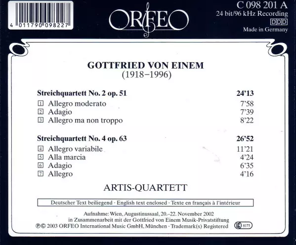 | Artiest | Artis Quartet | Gottfried von Einem |