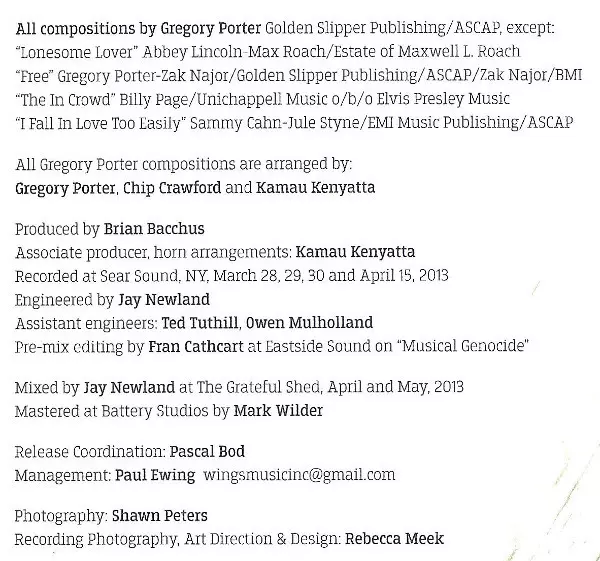 Not since Kurt Elling has there been a singer in jazz who started his career as brilliantly as Gregory Porter. With "Water" (2010) and "Be Good" (2012), his first two critically acclaimed albums for the independent Motéma Music label, Porter immediately established himself as one of the finest contemporary jazz singers. This is underscored by the two Grammy nominations he received for these albums. Now he presents his eagerly awaited third solo album, "Liquid Spirit" on the Blue Note label. Blue Note President Don Was encouraged the singer to stay true to his unique artistic vision in his new label. "I definitely consider myself a jazz singer, but I love blues, black southern soul and gospel no less," Porter defines himself. "These elements always find their way into my music. And I've always noticed them in jazz as well." For "Liquid Spirit," the singer once again leaned on the musicians who formed the core of his band on his previous two albums: pianist Chip Crawford, who is also musical director, drummer Emanuel Harrold, bassist Aaron James, alto saxophonist Yosuke Sato and tenor saxophonist Tivon Pennicott. On some tracks, Porter augmented the band with trumpeter Curtis Taylor and organist Glenn Patscha. The singer's old friends also include producer Brian Bacchus and arranger and co-producer Kamau Kenyatta. "I didn't say to myself, 'Okay, I'm at Blue Note Records now and I'm going to try to sound like Freddie Hubbard,'" Porter explains. I didn't have a specific plan for this album." He wanted the album to sound as organic as possible. And he was confident he could achieve that goal with a team that had been working together for years, rather than a band made up of stars. Porter has one of the most compelling and soulful baritone voices of our time. He can convey the emotion and spirit of any song possible without resorting to theatrical gimmicks. Critic Nate Chinen wrote in the New York Times: "Gregory Porter has most of what you want from a jazz singer, and maybe a few things you didn't even know you wanted." Porter's colleague, Kurt Elling, is also full of praise: "I am very confident about Gregory Porter's career. He sounds great and has a really great concept. I'm delighted that he's developing and that he's getting recognition and opportunities to spread his creative wings." Jazz diva Dee Dee Bridgewater praised Porter in JazzTimes magazine, "We haven't had a singer like this in a long time. He's an amazing songwriter. He just tells great stories." And she's right about that. Porter has a truly amazing gift for writing heartfelt songs based on personal experiences with an intimate and emotional directness. What's more, his catchy melodies are instantly engaging. On "Liquid Spirit," Porter explores similar themes to his debut album "Water": the songs deal with romantic ups and downs, his childhood and socio-political observations. In addition, he interprets three classics in his unmistakable way: the Motown hit "The 'In Crowd" by Dobie Gray, "Lonesome Lover" Abbey Lincoln and Max Roach, and the jazz standard "I Fall In Love Too Easily" by Jule Styne and Sammy Cahn. "I try to include something on every album from people who have influenced me deeply. 'Lonesome Lover' is my declaration of love to Abbey Lincoln," Porter reveals. Gregory Porter was born in 1971 in Bakersfield, Southern California, where he was introduced to gospel music at an early age thanks to his mother, who served in the church. Another major influence on his musical development was his mother's extensive collection of Nat King Cole recordings. Despite his love of music, Gregory, equipped with a football scholarship to San Diego State University, originally wanted to pursue a career in sports. However, a shoulder injury prematurely ended those plans. And so Porter - under the wing of his mentor Kamau Kenyatta - began to focus fully on music. When Kenyatta produced flutist Hubert Laws' 1998 album "Remembers The Unforgettable Nat King Cole" in Los Angeles, he invited Porter, an avid Nat King Cole fan, into the studio. Laws happened to hear him there singing the Charlie Chaplin classic "Smile" and was so excited that he spontaneously asked him to join the recording session. Another happy coincidence was that Hubert Law's sister Eloise also stopped by the studio at the time and saw Porter in action. The singer was to accept a role in the new musical It Ain't Nothin' But The Blues shortly thereafter and recommended producer Gregory Porter for the male lead. After the Broadway premiere, the New York Times described the then-unknown Porter as a "singing force." The show was nominated for four Tony Awards and three Drama Desk Awards that year. However, Gregory Porter's first album "Water", which was immediately nominated for a Grammy Award, had to wait a good ten years. His second album "Be Good", also nominated for a Grammy, was even more impressive in 2012. "Porter blends jazz and soul better than any of his contemporaries," said the American magazine Soul Tracks, naming "Be Good" potentially the best album of the year in January. Though Porter has since shared the stage or been in the recording studio with stars like Van Morrison, Wynton Marsalis, Herbie Hancock, Dianne Reeves, Nicola Conte and David Murray, he hasn't lost his footing. "I haven't been able to process it all yet," he admits. "Especially having worked with musical icons like Wynton and Herbie. They welcomed me with open arms. I wouldn't have expected that in my wildest dreams two years ago." With the release of "Liquid Spirit," Gregory Porter should be on his way to a new career high.