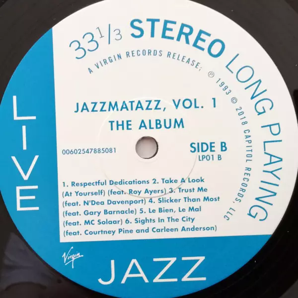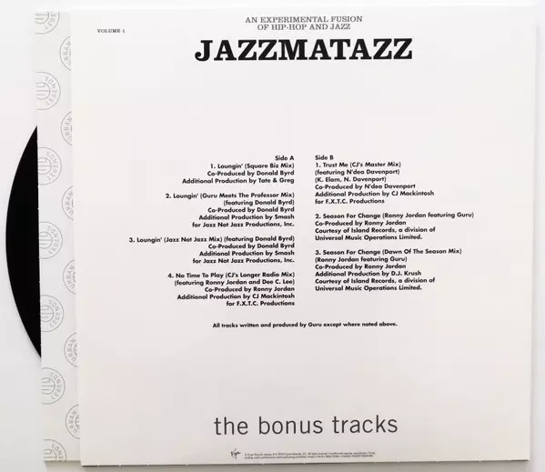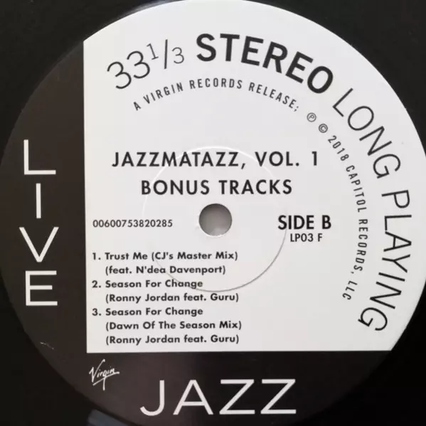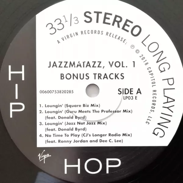 Guru: Jazzmatazz Volume: 1 - Deluxe Edition versie op vinyl 3LP/Doos in standaard editie. Deze specifieke uitgave werd uitgebracht in Europa bij uitgeverij Virgin in samenwerking met Chrysalis op 29. juni 2018. Album valt binnen het genre Elektronische muziek, Hip Hop, Conscious Hip Hop, Jazz Rap en Acid Jazz.