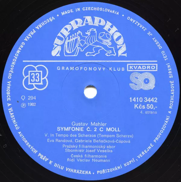 | Artiest | The Czech Philharmonic Orchestra | Václav Neumann | Gustav Mahler | Gabriela Beňačková | Czech Philharmonic Chorus | Eva Randová |