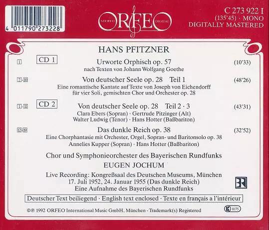 | Artiest | Symphonie-Orchester Des Bayerischen Rundfunks | Eugen Jochum | Hans Pfitzner |