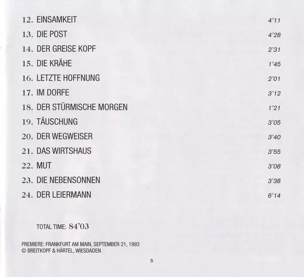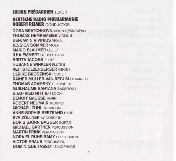 | Artiest | Julian Prégardien | Deutsche Radio Philharmonie Saarbrücken Kaiserslautern | Hans Zender | Robert Reimer |