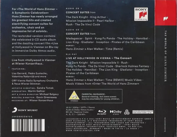 | Titel | The World Of Hans Zimmer: A Symphonic Celebration (Extended Version) DIGI |