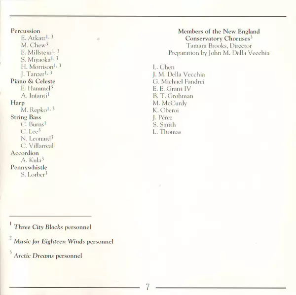 | Titel | Three City Blocks / Music For Eighteen Winds / Arctic Dreams |