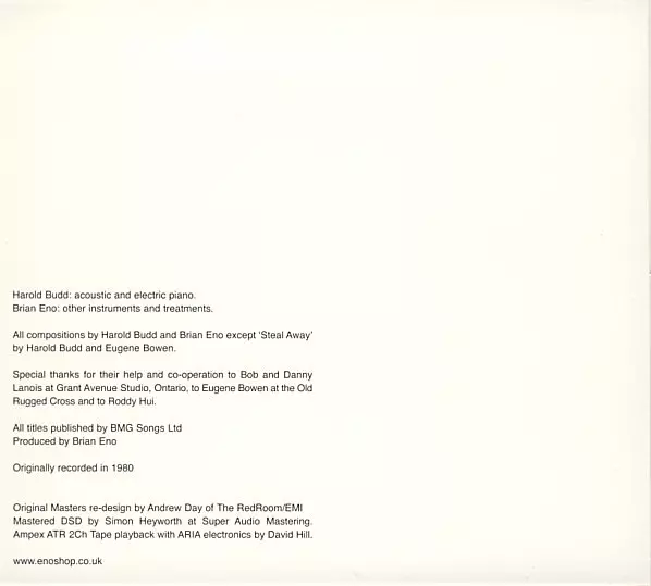 | Artiest | Brian Eno | Harold Budd |
