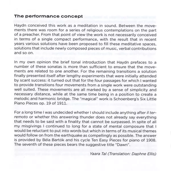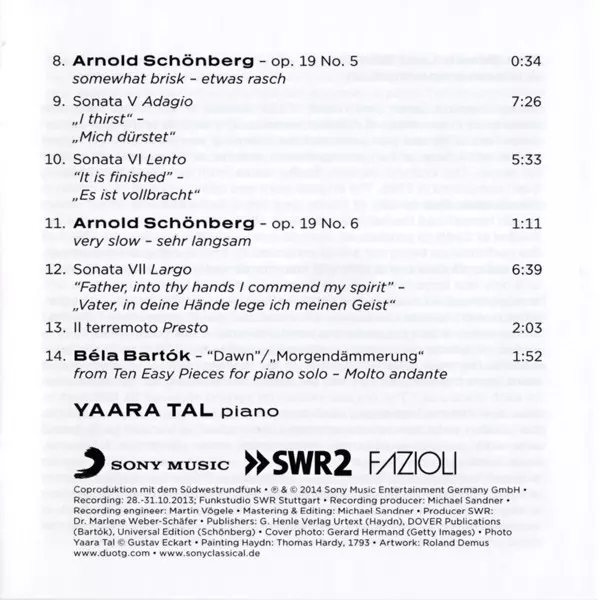| Artiest | Joseph Haydn | Béla Bartók | Arnold Schoenberg | Yaara Tal |