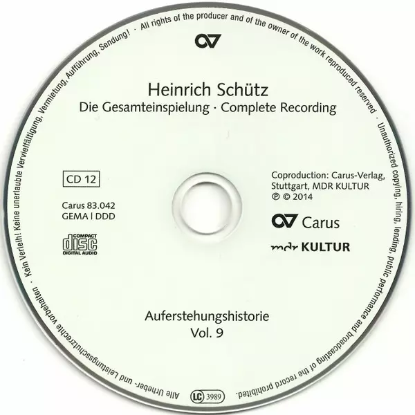 Choir Dresdner Kammerchor | Conductor Hans-Christoph Rademann | Organ Ludger Rémy | Theorbo Lee Santana | Viol Frauke Hess | Vocals Friedemann Condé, Marie Luise Werneburg, Ulrike Hofbauer | Vocals [Evangelist] Jan Kobow | Vocals [Jesus] Harry van der Kamp