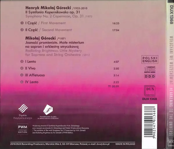 | Artiest | Henryk Górecki | Orkiestra Symfoniczna Filharmonii Śląskiej | Mirosław Jacek Błaszczyk | Chór Filharmonii Śląskiej | Agata Zubel | Śląska Orkiestra Kameralna | Mikołaj Górecki | Robert Kabara | Mariusz Godlewski | Joanna Woś | Jarosław Wolanin |