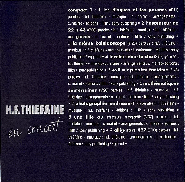 Hubert Félix Thiéfaine: En Concert versie op 2CD in standaard editie. Deze specifieke uitgave werd uitgebracht in Frankrijk bij uitgeverij Legacy in samenwerking met Sony Music op 5. juli 2019. Album valt binnen het genre Rock, Pop, Pop Rock en Chanson.