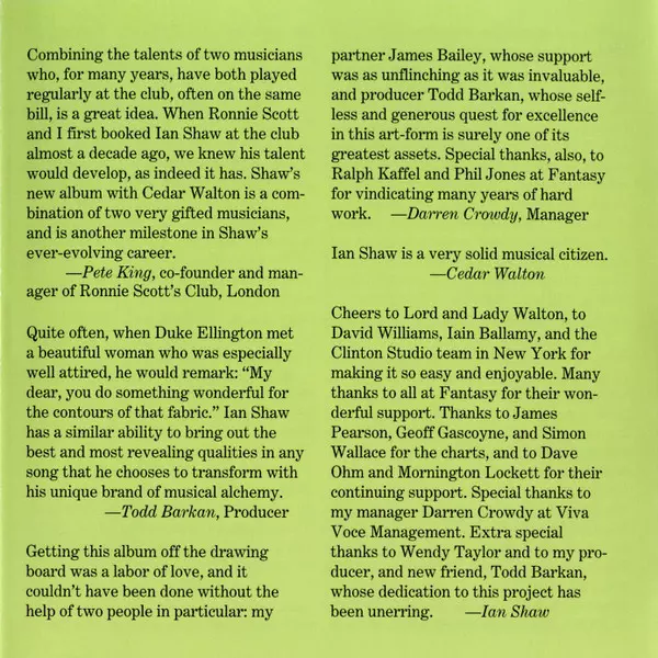 | Artiest | Cedar Walton | Ian Shaw |