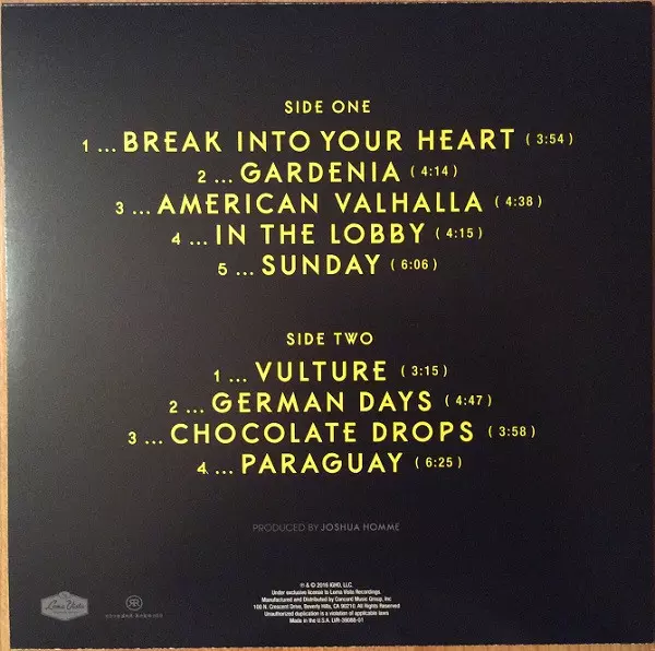 Baritone Saxophone, Flute David Moyer | Bass, Guitar, Vibraphone, Vocals, Steel Drums Josh Homme | Drums, Vocals Matt Helders | Electric Piano [Wurlitzer] Dean Fertita | Trumpet Jordan Katz | Tuba Blake Cooper | Valve Trombone, Trumpet, French Horn [Marching French Horn] Danny T. Levin | Vocals Iggy Pop