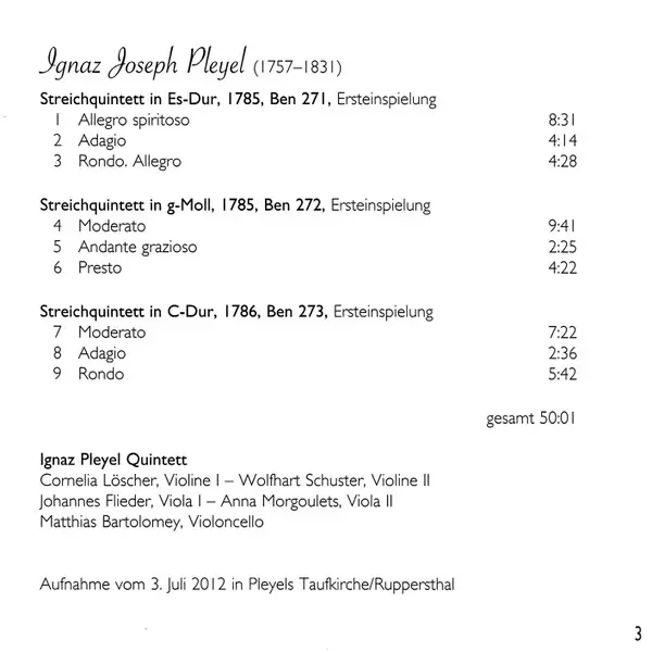| Artiest | Ignaz Pleyel | Ignaz Pleyel Quintett |