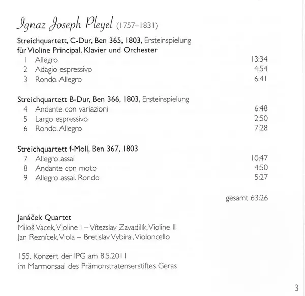Artiest | Ignaz Pleyel | Janáček Quartet |