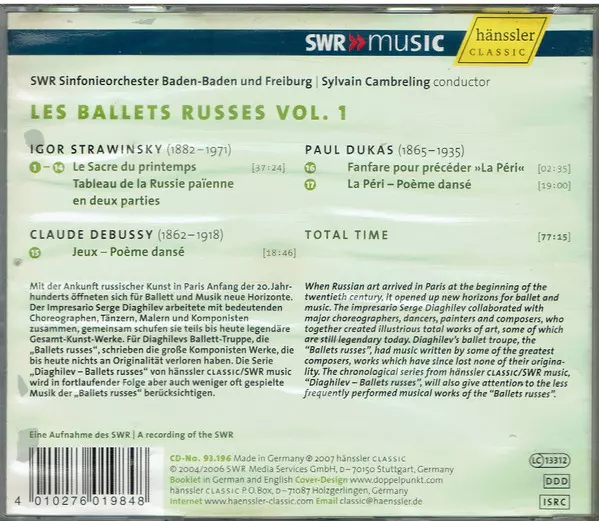 | Artiest | Claude Debussy | Igor Stravinsky | SWR Sinfonieorchester Baden-Baden Und Freiburg | Sylvain Cambreling | Paul Dukas |