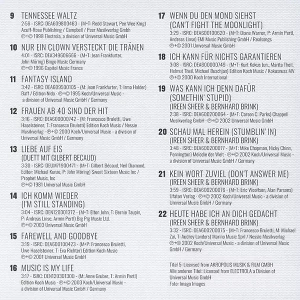 | 22 | Bernhard Brink, Ireen Sheer: Heute Habe Ich An Dich Gedacht | 3:32 min |