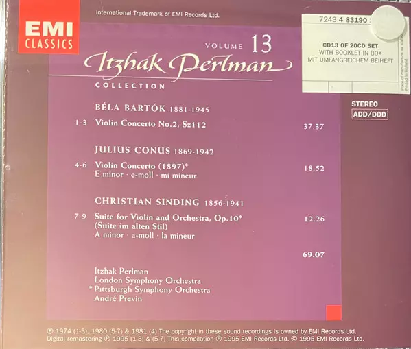 | Artiest | The London Symphony Orchestra | André Previn | Itzhak Perlman | Béla Bartók | Pittsburgh Symphony Orchestra | Julius Conus | Christian Sinding |