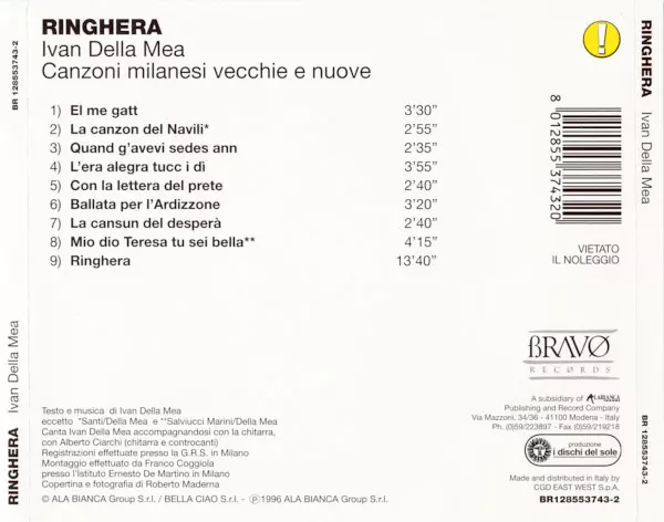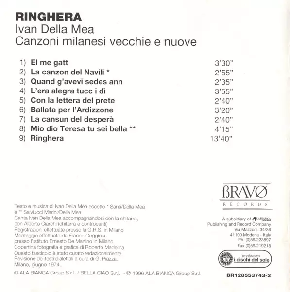 | Uitgever | Bravø Records | I Dischi Del Sole | Ala Bianca Group S.r.l. | Bella Ciao S.r.l. |