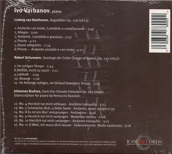 | Artiest | Ludwig van Beethoven | Johannes Brahms | Robert Schumann | Ivo Varbanov |